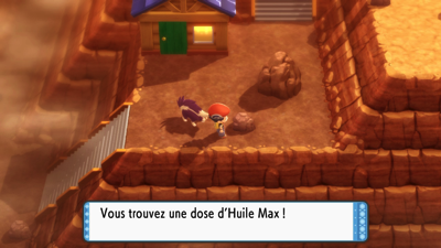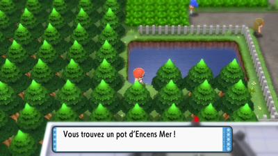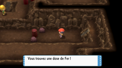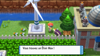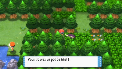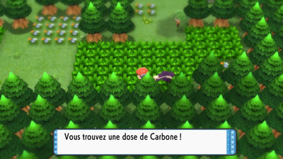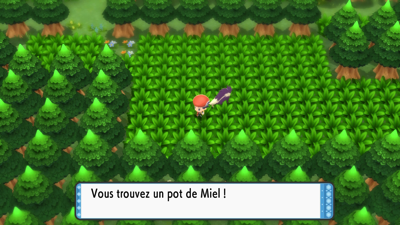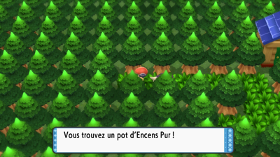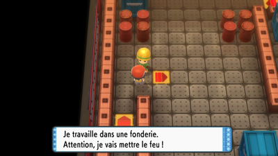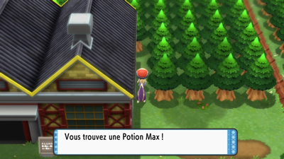 Récupérez une Hyper Ball (cachée près de l'arbre à miel) ainsi qu'une Potion Max (cachée dans le chemin, entre le bâtiment et les arbres). Entrez dans la forge, parsemée de dalles fléchées, dresseurs et objets.