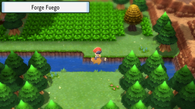 Continuez de surfer vers le nord-ouest jusqu'à atteindre la Forge Fuego. Commencez par cueillir 2 Baies Sitrus, 4 Baies Repoi et 2 Baies Alga.