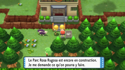 Dans la zone centrale, un dernier dresseur vous attend. Tout au bout se trouve le Parc Rosa Rugosa encore en travaux et qui ne sera accessible que plus tard. Votre excursion à dos de Castorno est désormais terminée. Il est temps de reprendre le cours de votre aventure et pour cela rendez-vous à Féli-Cité.
