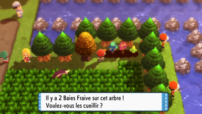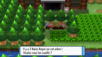 Dirigez-vous vers l'ouest puis battez les derniers dresseurs présents et récupérez 2 Baies Fraive, 2 Baies Kika, 2 Baies Figuy et 2 Baies Nanana.
