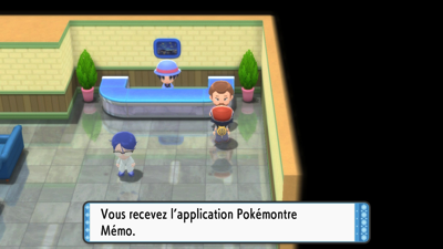 Dirigez-vous dans le bâtiment Pokémontre S.A. pour obtenir deux nouvelles applications pour votre Pokémontre : Mémo (qui permet de prendre des notes) et Carte à repères (placement de repères à certains endroits). Prenez le portail à l'ouest de la ville pour atterrir sur la Route 218.
