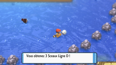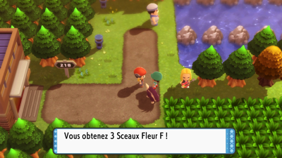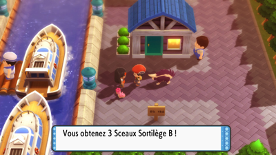 Parlez au Fan de Camping et il vous remettra 3 Sceaux Fleur F si vous avez parlé à la jeune fille avec le Goélise sur le ponton. Retournez voir cette même jeune fille sur le ponton pour recevoir 3 Sceaux Étincelle B.