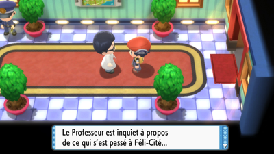 Entrez dans le portail pour retrouver le père de l'assitant(e) du professeur qui tente d'améliorer votre Pokédex... qui n'a vraisemblablement pas besoin d'être mis à jour (affichage mâle/femelle). Avant de partir, il vous demande de bien surveiller la Team Galaxie car le Professeur est inquiet...