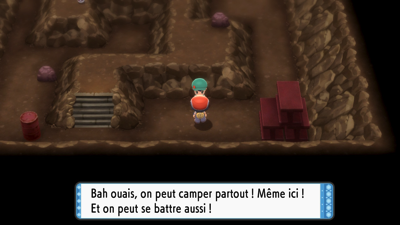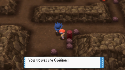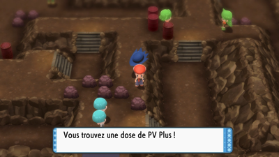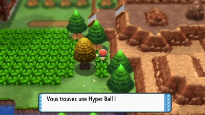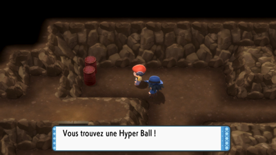 Dirigez-vous tout droit pour affronter deux premiers dresseurs (montagnards), récupérez une Guérison (cachée sur un baril au sud) et une Hyper Ball (au nord-ouest).