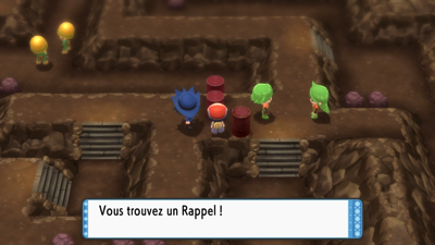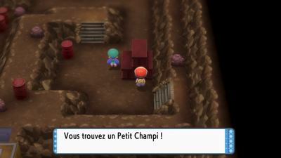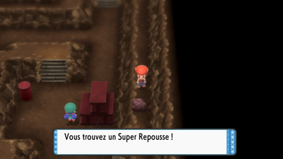 Allez récupérer une Corde Sortie en passant les 3 tonneaux puis un Super Repousse plus loin. Défiez une dresseuse puis récupérez un Petit Champi (caché près de la dresseuse).