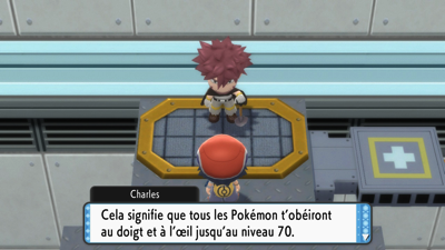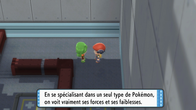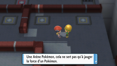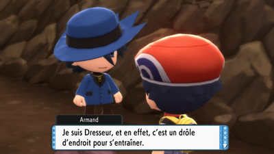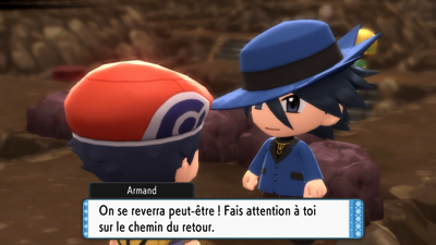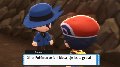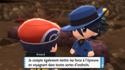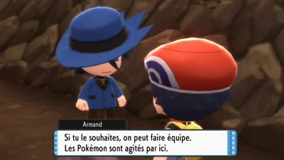 Remontez et prenez les escaliers à gauche. Vous faites alors la connaissance avec un certain Armand, dresseur de Pokémon tout comme vous. Il souhaite faire équipe avec vous pour s'entraîner (il soignera vos Pokémon s'ils sont mal en point).
