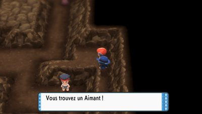 Continuez au sud-est pour tomber sur un autre combat (combattants), récupérez un Aimant et une Plaque Fer (cachée dans un cul-de-sac plus loin).
