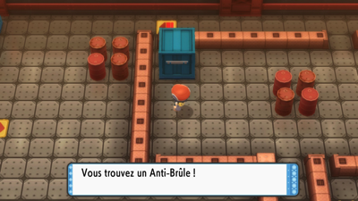 Suivez le chemin suivant pour tout récupérer sans devoir tout recommencer : prenez la dalle fléchée tout à l'ouest puis le premier couloir (extrême-ouest) jusqu'à tomber sur un premier dresseur. Prenez le chemin qui vous permet d'atterrir dans la zone avec un objet visible au sol : il s'agit d'un Anti-Brûle.