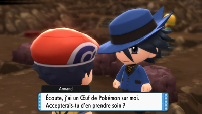 Vaincus, les sbires s'enfuient et Armand vous remercie en vous proposant un Oeuf de Pokémon (contenant un Riolu).