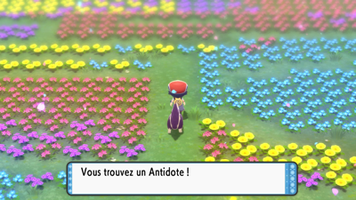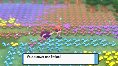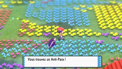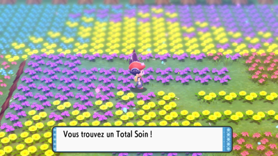 Une Pierre Plante (visible au sol près de l'entrée), un Rappel (caché près de l'entrée), une Potion (cachée dans un chemin au nord près de fleurs bleues), une Graine Miracle (visible au sol au nord-ouest), un Total Soin (caché près de la Graine Miracle), un Miel (caché tout près du Total Soin), un Antidote (caché à l'intersection entre fleurs bleues et jaunes), une Potion Max (cachée près de la Pierre Plante), un Rappel (caché sur un chemin au sud-ouest), une Hyper Potion (cachée à l'extrême sud-ouest), un Anti-Para (caché vers le sud sur un chemin), une Super Potion (cachée juste au-dessus du rebord au sud) et enfin un Miel (caché à l'extrême sud-est).