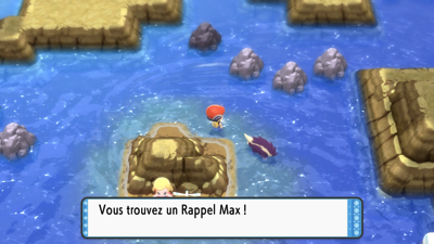 Combattez les dresseurs à l'ouest puis récupérez un Rappel Max (sur l'îlot avec la Fille à la Bouée, qui elle, vous remet 1 Sceau Fête B) ainsi qu'une Perle (cachée dans le mur nord).