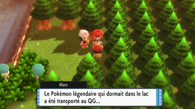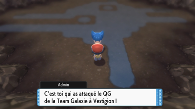 Vaincu, il vous parle de leur fameux plan de réunir le pouvoir des trois Pokémon des lacs pour créer un nouvel univers... puis s'enfuit ! Il est temps d'aller voir où en sont le Professeur et son assistant(e) au Lac Vérité.