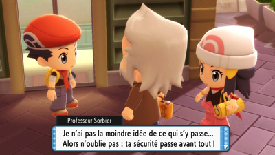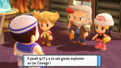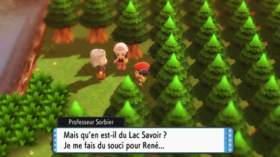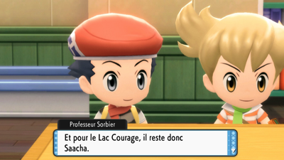 Votre rival se met directement en selle en direction du Lac Savoir. Le Professeur et son assistant(e) vont se rendre au Lac Vérité et il vous conseille vivement d'être prudent en vous rendant au Lac Courage. Ils vous y rejoindront si tout se passe comme prévu.