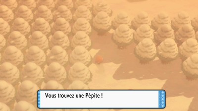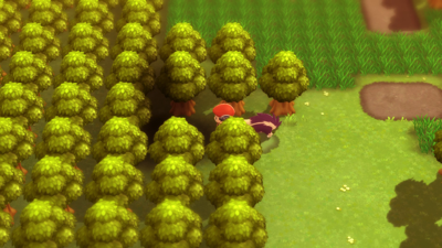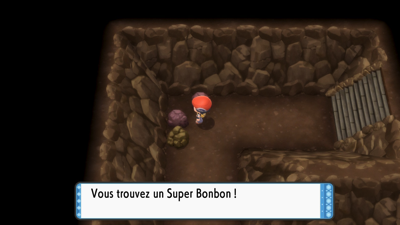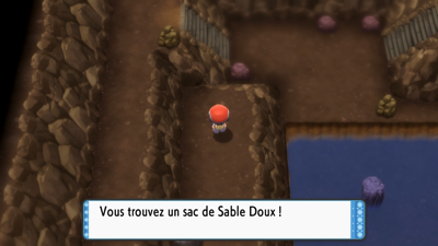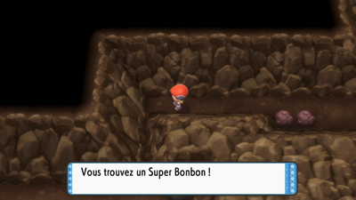 En rebroussant chemin, brisez un rocher et poussez-en un autre pour tomber sur un Sable Doux. Rebroussez chemin et continuez tout au nord pour récupérer un Super Bonbon (caché entre deux rochers).