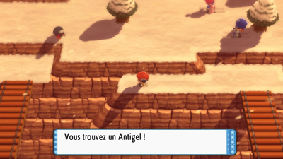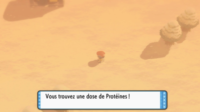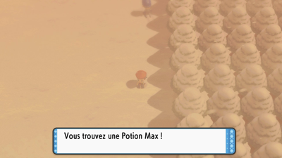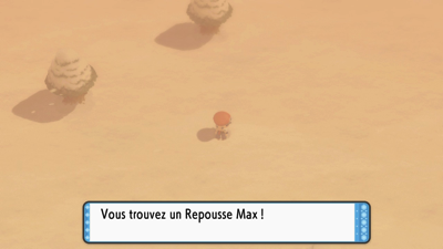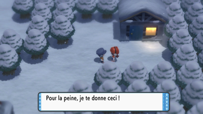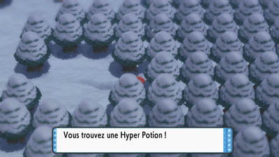 Ressortez et ramassez un Repousse Max (caché près de la maison) puis continuez à l'est pour tomber sur un dresseur et ramasser une Potion Max (cachée dans la neige) ainsi qu'un Rappel Max (caché un peu plus haut).