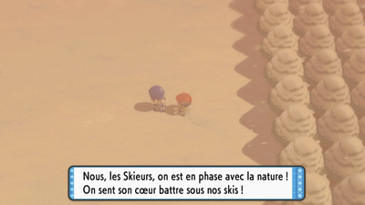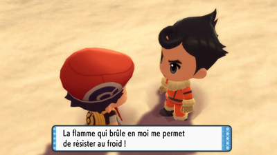 Allez ensuite vous faire soigner au Centre Pokémon puis ressortez et récupérez une Hyper Potion (cachée près des arbres). Au nord-est, une jeune femme vous donne 3 Sceaux Combustion A si vous portez le Look Hivernal (achetable à Voilaroc).