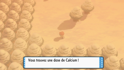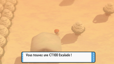 Allez ensuite à droite des deux arbres pour ramasser une Hyper Ball (cachée dans la neige). Défiez un dresseur et récupérez un Calcium (caché juste en contrebas de ce dernier).