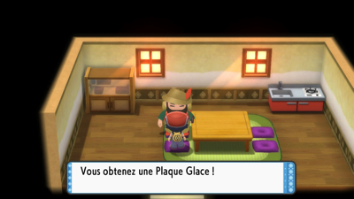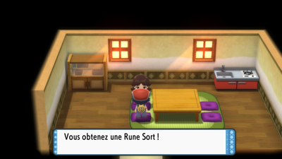 Continuez toujours au nord et entrez dans la maison pour récupérer une Rune Sort en parlant à la jeune femme. Derrière la maison, se trouve une Pierre Glacée (nécessaire à l'évolution d'Évoli en Givrali).