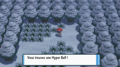Au nord-ouest, débusquez une Hyper Ball (cachée dans la neige) et combattez les trois derniers dresseurs.