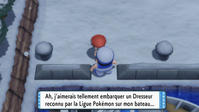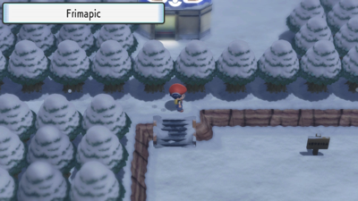 Vous voici à Frimapic, ville où vous pouvez récupérer votre avant-dernier badge d'Arène. Mais avant il y a quelques petites choses à faire. Commencez par parler au marin qui souhaite rencontrer un dresseur qui a battu la Ligue Pokémon (il vous faudra revenir plus tard pour voir ce qu'il a à vous proposer)...