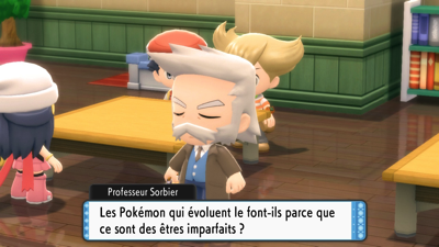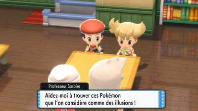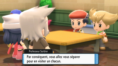 Alors qu'il se met à vous parler de ses recherches sur l'évolution, il vous demande d'aller recueillir des données sur les trois Pokémon vivant dans les lacs de la région.