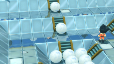 Continuez de glisser vers la droite jusqu'à atteindre une dresseuse. Dirigez-vous vers le haut puis vers la gauche (2ème case sur la plaque enneigée) et encore vers la gauche pour éclater 1 boule de neige. Passez les marches puis glissez vers le bas, la gauche, le bas jusqu'à atteindre une plaque de neige fondue. Dirigez-vous vers le haut jusqu'à buter contre une boule de neige puis allez à droite pour en éclater 1 autre.