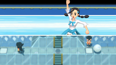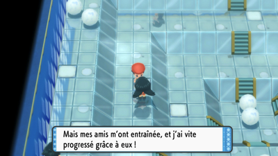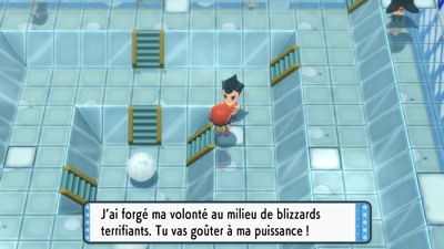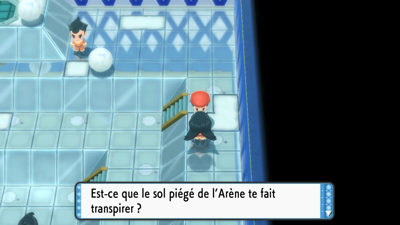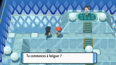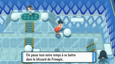 Ici, les Pokémon de type Feu, Plante et Électrik feront d'énormes dégâts. Vous allez devoir vous frayer un chemin en éclatant les boules de neige qui vous bloquent le passage jusqu'à atteindre la championne.