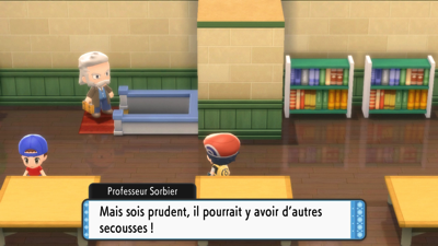 Comme vous devez vous en souvenir, votre rival vous attend au dernier étage de la bibliothèque. Il vous amène alors jusqu'au Professeur Sorbier et son assistant(e).