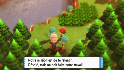 Un peu plus loin, vous arrivez devant la Rive du Lac Savoir qui est pour le moment bloquée par des Sbires de la Team Galaxie. Dirigez-vous à l'est tout en récupérant une Hyper Ball pour finalement arriver dans une nouvelle ville.