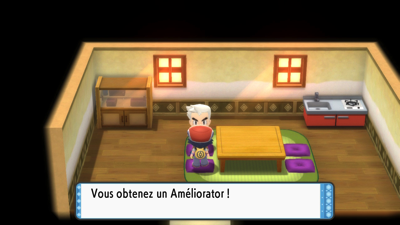 Reprenez votre route en direction de Vestigion et allez dans la maison la plus au sud-ouest pour retrouver le Prof. Chen qui vous remet un Améliorator. Vous pouvez à tout moment lui montrer l'avancement de votre Pokédex en revenant le voir.