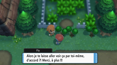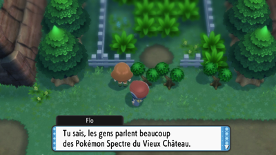 Si vous jouez de nuit, dirigez-vous vers la Forêt de Vestigion. Vous apercevrez Flo près du Vieux Château qui vous parlera de rumeurs sur une potentielle présence sinistre de Pokémon Spectre dans ce dernier. Elle ne compte pas y aller pour vérifier, mais voudrait que vous accomplissiez cette tâche.