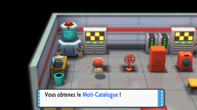 Avec Motisma en tête de votre équipe, retournez dans le Centre Galaxie de Vestigion. Au rez-de-chaussée, inspectez le coin au nord-ouest près des trois bibliothèques pour utiliser le clé précédemment obtenue et ainsi dévoiler une salle secrète ! À l'intérieur, vous trouvez un carnet listant des notes sur le Pokémon que vous venez de capturer et il semblerait qu'il puisse prendre diverses formes en entrant dans certains appareils électroménagers.