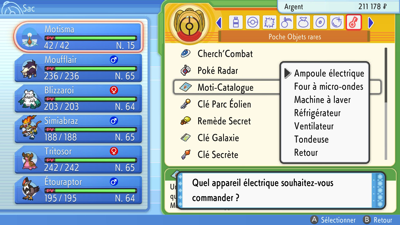 Rendez-vous donc au Vieux Château et retournez à l'étage, dans la chambre où se trouve une télévision. Interagissez avec cette dernière pour en faire sortir un Pokémon Électrik et Spectre qui n'est autre que Motisma ! Après avoir capturé ce Pokémon unique, vous constatez que les rumeurs qui circulaient étaient donc bien vraies et vous obtenez également la Clé Secrète.