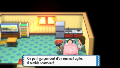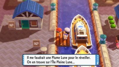 Avant de continuer, il est temps d'aller ajouter quelques légendaires importants à votre Pokédex en suivant les quêtes ci-après ! De retour à Joliberges, entrez maintenant dans la maison juste à côté du marin. Dedans, vous retrouvez un enfant tourmenté par ses rêves. Ressortez et parlez à nouveau au marin pour qu'il vous parle de son fils, que vous venez de voir et qui est plongé dans d'horribles cauchemars : il vous informe alors qu'il a besoin d'une Plume Lune pour le réveiller et que l'on n'en trouve que sur l'Île Pleine Lune ! Comme vous l'aurez compris, il vous donne ensuite pour mission d'aller en récupérer une pour aider son fils à sortir de cette tourmente.