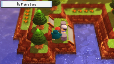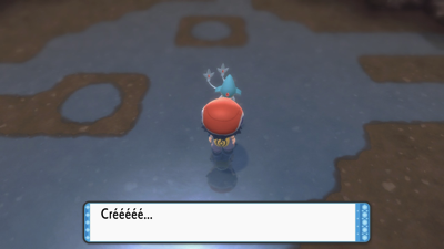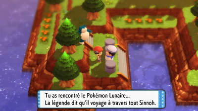 Lorsque vous acceptez, il vous amène directement sur l'île. Allez jusqu'au coeur de cette île en vous enfonçant dans la forêt pour y trouver un Pokémon légendaire ! Il s'agit de Cresselia qui prendra la fuite, comme Créfollet, dès que vous interagirez avec lui, et vous devrez alors, comme pour le Pokémon du trio des Esprits, le traquer à travers tout Sinnoh si vous souhaitez le capturer.