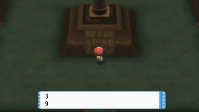 Vous allez devoir avancer à l'aveugle (les salles sont générées aléatoirement) jusqu'à passer dans moins de 30 salles et avoir croisé celles contenant un pilier. Une fois que vous atterrissez dans une salle contenant un pilier, vous pourrez consulter sur le mur le nombre de piliers trouvés (chiffre du haut) et le nombre de salles déjà passées (chiffre du bas).