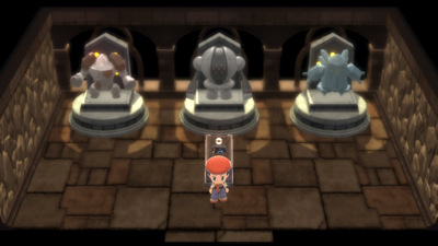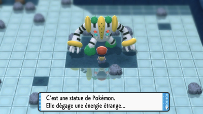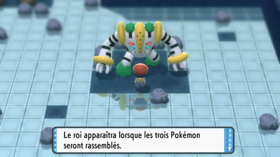 Au 5ème et dernier sous-sol, si vous avez Regirock, Regice et Registeel, vous pouvez rencontrer et capturer Regigigas le roi des Golems en suivant le chemin comme montré sur notre image !