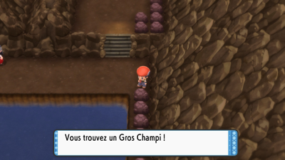 Après les escaliers, occupez-vous de deux couples de dresseurs et récupérez un Gros Champi (caché dans un rocher) en continuant vers l'est.