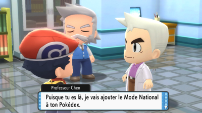 À ce même moment, le Professeur Chen de la région de Kanto arrive. Après que le Professeur Sorbier lui a conté vos exploits et après avoir fait les présentations, le réputé professeur de sa région ajoute le Mode National à votre Pokédex. Il compte sur vous pour le compléter à nouveau en obtenant les données des 493 Pokémon !