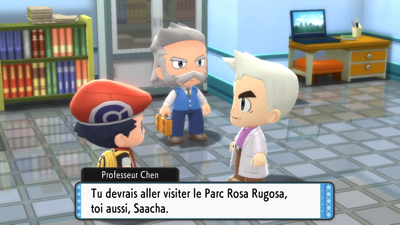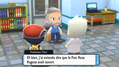 Avant de partir, le Professeur Chen vous informe également que le Parc Rosa Rugosa (au bout da la Route 221) est ouvert et qu'il vous aidera donc à compléter votre nouveau Pokédex en vous y rendant, étant donné qu'il possède un système qui attire des Pokémon venant des quatre coins du monde.