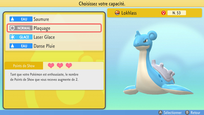 Avant de participer au Concours, il vous est demandé de choisir votre Pokémon, sa capacité Concours, la Capsule Ball qui lui sera associée et votre Tenue.