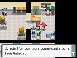La Team Galaxie est une organisation criminelle qui sévit à Sinnoh. Son but est de créer un nouveau monde, dépourvu d'impuretés liées aux émotions humaines et à l'esprit. Elle est dirigée par Hélio ainsi que 3 commandants : Mars, Saturne et Jupiter. Chaque commandant mène des opérations à des lieux différents de Sinnoh et vous les croiserez tout le long de votre aventure. Vous trouverez donc sur cette page les combats contre ces personnages importants de la Team Galaxie.