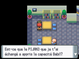 Une petite fille au rez-de-chaussée d'un immeuble à gauche de la Boutique de Charbourg vous propose d'échanger son Abra contre votre Machoc.