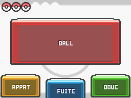 Lancer un appât* : Cela rendra le Pokémon plus facile à capturer mais cela augmente ses chances de fuir.