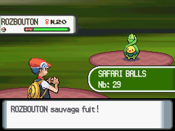 Sur Pokémon Platine, ce même PNJ dit que l'appât rend le Pokémon sauvage plus facile à capturer et que la boue diminue ses chances de fuir, et c'est en adéquation avec les résultats observés sur PlatineTestés sur une cinquantaine de combats en ne jetant que de la boue et une centaine en ne jetant que des appâts.