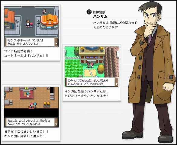 Une nouveauté de plus dans Pokémon Platine !!A certains moments de l'aventure, vous serez aidés par un détective du nom de Beau (?).