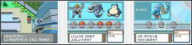 Voici un des nouveaux services offerts dans la Tour de Combat, il s'agit d'un système de location de Pokémon. Ceux ci sont débloqués au rythme de vos victoires dans la tour de combat.