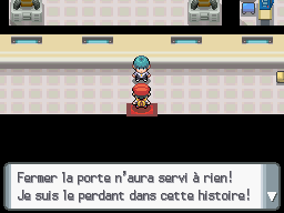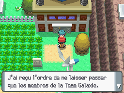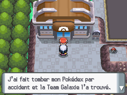 Apprenez la CS à un Pokémon et entrez dans le bâtiment au Nord du Centre Pokémon, il est occupé par la Team Galaxie.