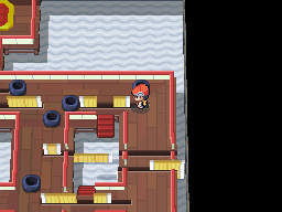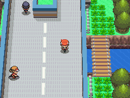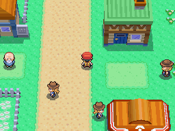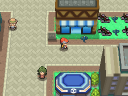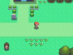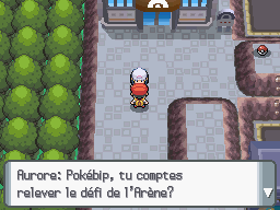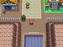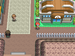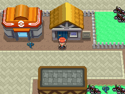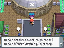 La championne de la ville se tient devant le bâtiment au Nord-Est, elle vous explique qu'elle ne peut pas vous affronter, vous n'êtes pas assez fort. Entrez dans le bâtiment, vous retrouvez la fille et votre mère qui vous donneront quelques objets non essentiels.