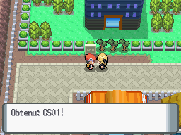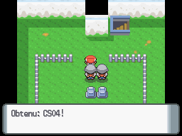 Allez ensuite au dessus du Centre Pokémon, une certaine Cynthia, amie du professeur Sorbier, vous donne la CS01 Coupe pour vous aider.